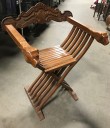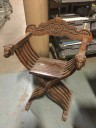 Furnishings, Savonarola with Lion Head Carved Arms, 22.5"W, 20" D, 33" H, Mid Tone Wood, Wood