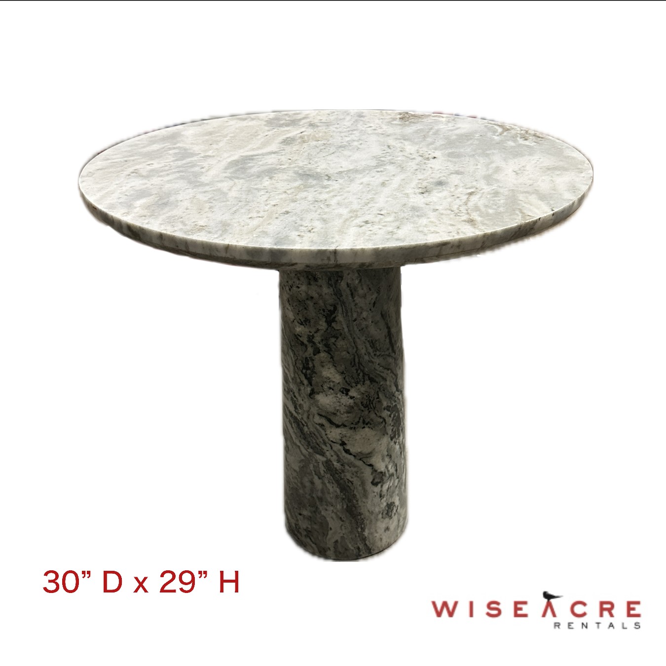 Furnishings, Marble Table, 30" D , 29" H, White, Grey, Marble