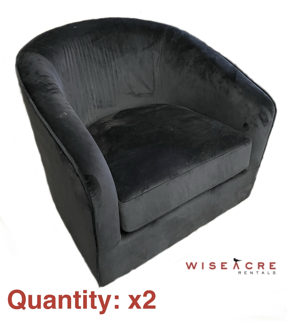 Furnishings, Black and gold swivel barrel chair, 29'' W, 28'' H, 29'' D, Black, Gold, Velvet