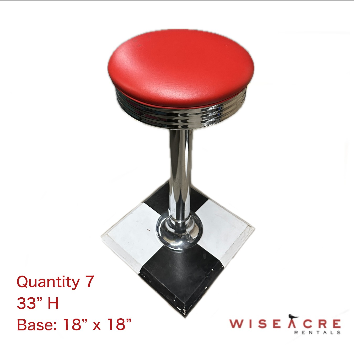 Furnishings, Bar Stool with base, 33" H, Red, White, Black, Leather, Metal