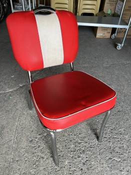Diner Booth Seating Barcode: 00123417 Weekly: $50.00 Furnishings, Red Diner Chair with White Stripe, Red, White, Silver, Leather