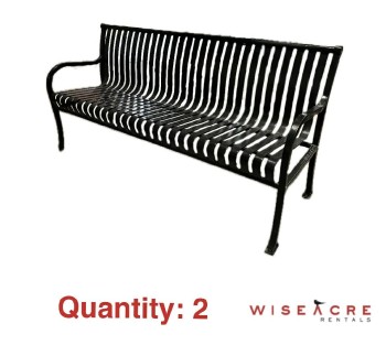 Unavailable Outdoor Benches Barcode: 00132267 Quantity: 2 Weekly Price: $200.00 Outdoors & Greenery, Metal Park Bench, Black, Metal